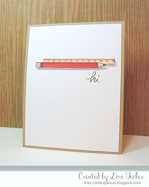 I stamped the "hi" sentiment from the Pencil Me In set beneath the pencil and ruler, selecting a cursive font to bring in the script element from the inspiration photo. The finished panel was adhered to a kraft card base.